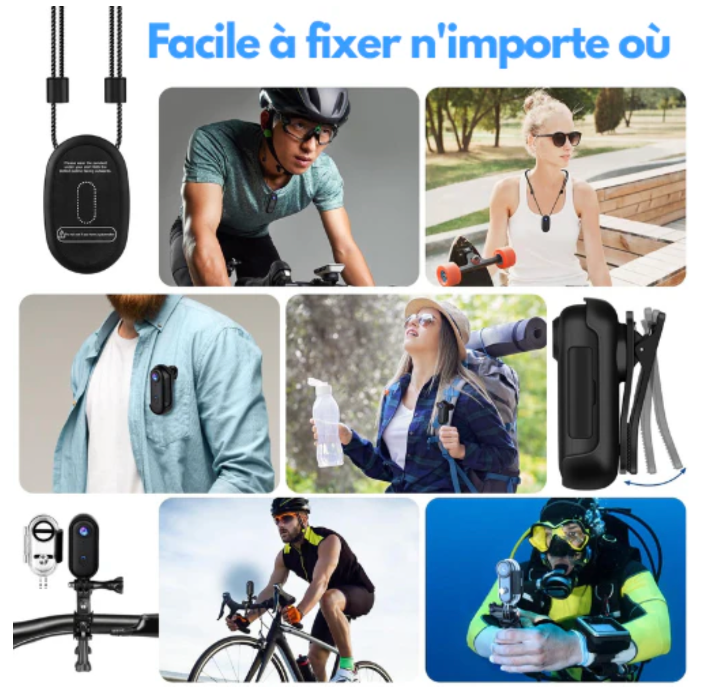 L'attache casque est la meilleure option, car elle ne risque pas de tomber, contrairement au collier magnétique. elle reste stable même lors des descentes rapides et des mouvements brusque.